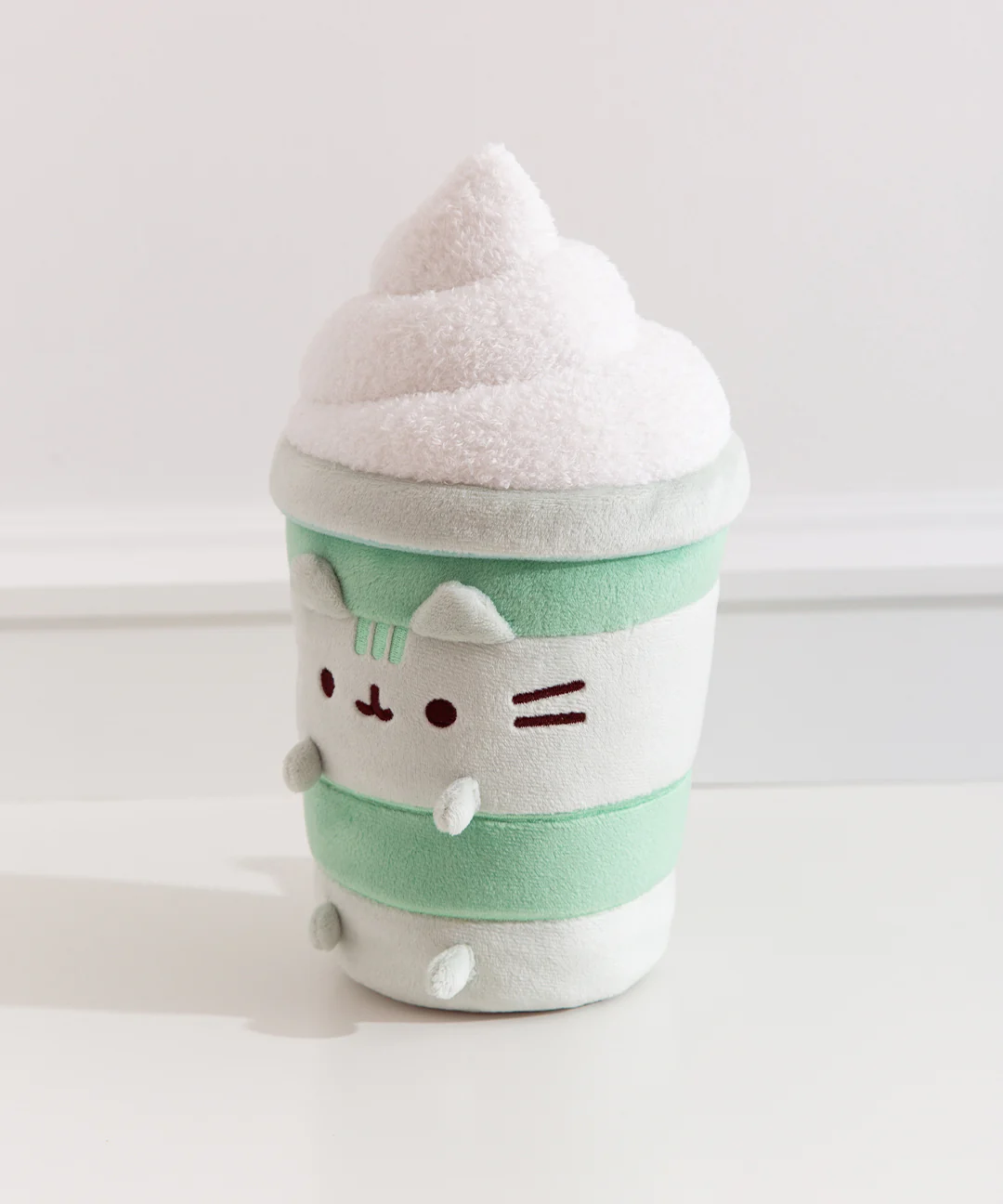 Pusheen’s feeling green as a delicious, creamy matcha latte! This large, 9.5” plush captures Pusheen as a green striped matcha-filled cup topped with a white swirl of soft tousled plush whipped foam. It also features Pusheen’s signature smile, pointed ears, and striped tail.