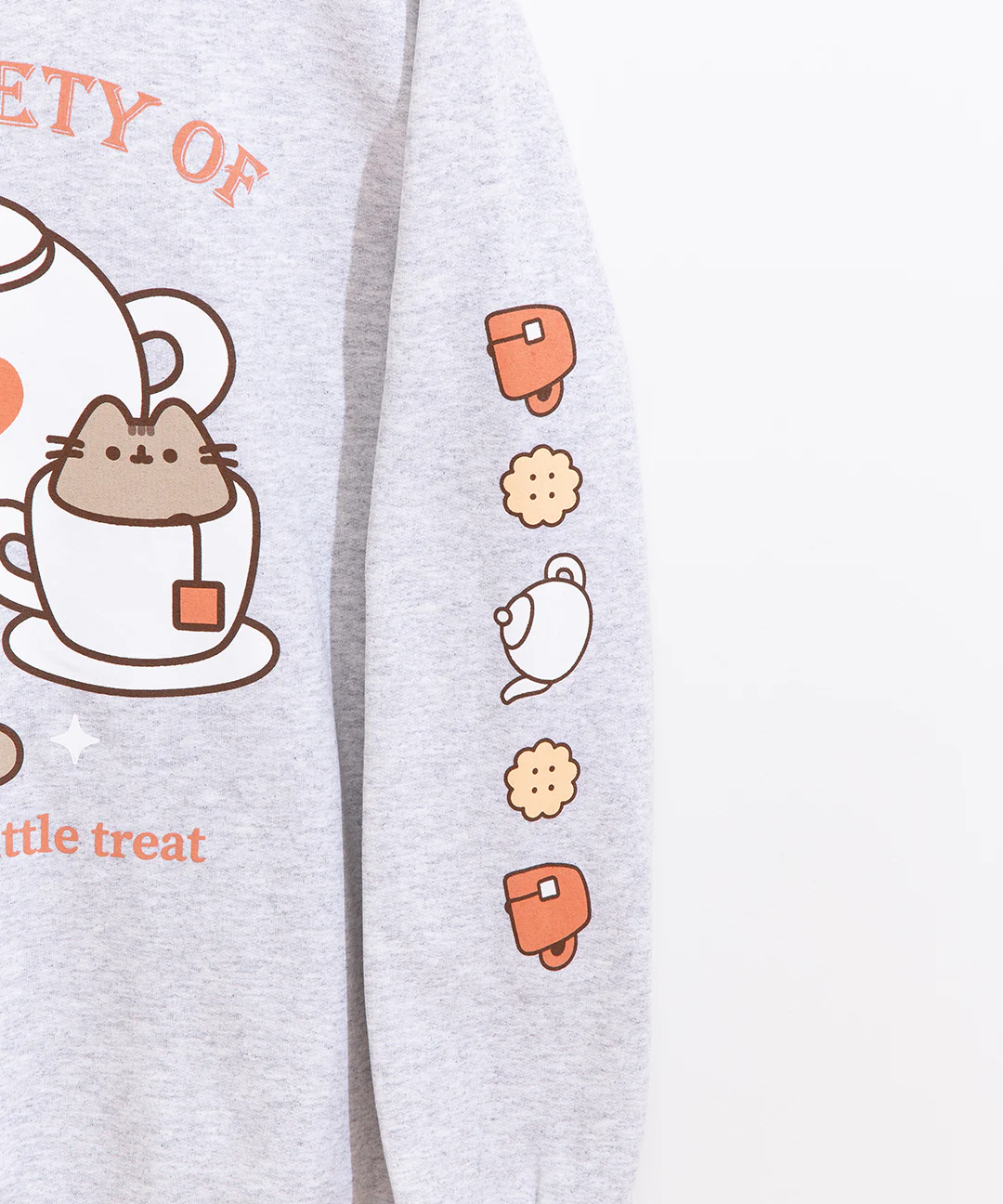 What's better than tea and a little treat?! This Pusheen Shop Exclusive Sweatshirt features Pusheen enjoying some tea while surrounded delicious cupcakes and biscuits.