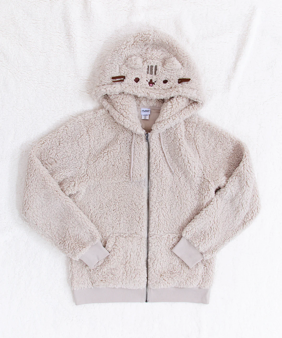 - Zip-up hoodie featuring Pusheen's face and whiskers on the hood and iconic stripes on the back.